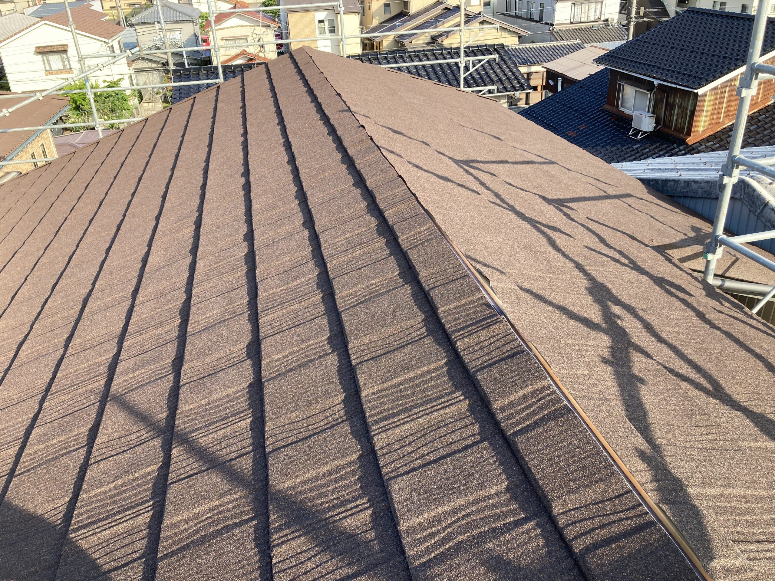その際に、アスベストの入っていないコロニアルのため、入っているものと比べて弱く、すでにかなりの劣化が進んでいる事、仮に塗装しても何の解決にもならず、そもそも塗装は屋根にとってマイナスである事、いずれは大々的なリフォーム(カバー工事)が必要になってくる事、材料費が段階的に値上がりしているので、可能であればカバー工事は早い方がいいという事、等を説明されました。丁寧な説明に『なるほど』と納得する部分が多く、カバー工事を決断しました。