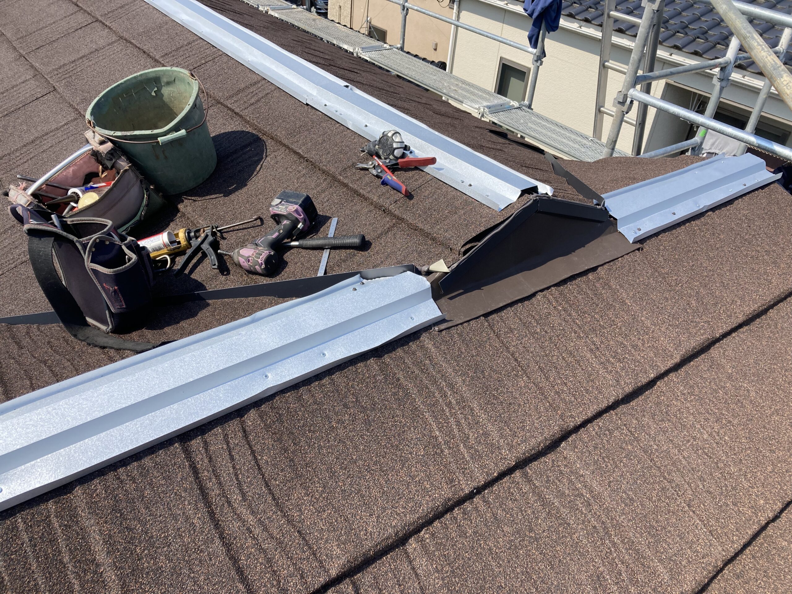 専用の役物板金を施工していきますが、これらを含めて全てガルバリウム鋼板です。